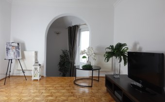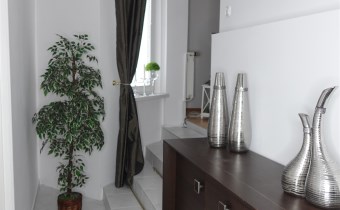 Wnętrze o bardzo interesującym, dwupoziomowym układzie, który nadaje unikalną architekturę. Schody wychodzące z łukowych przejść nadają wnętrzu wyjątkowego uroku. Prowadzą one do niżej usytuowanego przedpokoju, tworząc niepowtarzalny efekt klasycznej elegancji.