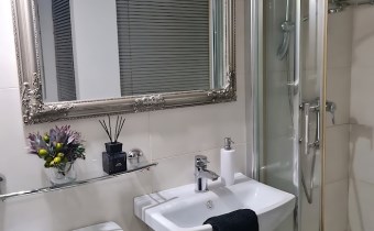 Mieszkanie wyposażone jest w ogrzewanie centralne, co zapewnia niezależność i komfort cieplny przez cały rok. Gwarancją niskich kosztów źródła ciepła jest piec zasilany na ekogroszek, który został zabudowany za żaluzjami w łazience, dzięki takiemu zabiegowi wnętrze zostaje estetyczne i funkcjonalne.
